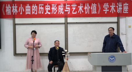 3月9日,榆林学院文学院5号教学楼101室成功举办了“塞上明珠·榆林小曲推广普及系列活动”的学术讲座,吕政轩教授做了主题为《榆林小曲的历史形成与艺术价值》的学术报告。榆林小曲传承人王青先生和梁梅女士进行了现场表演。此次讲座突破了单一的学术讲座形式,采用现场表演和师生互动式教学模式,使得同学们对榆林小曲有了理性了解和感性认知。