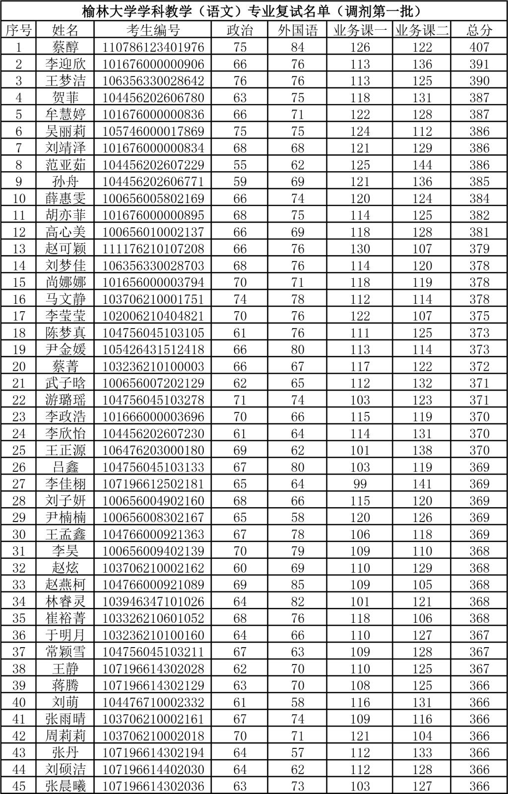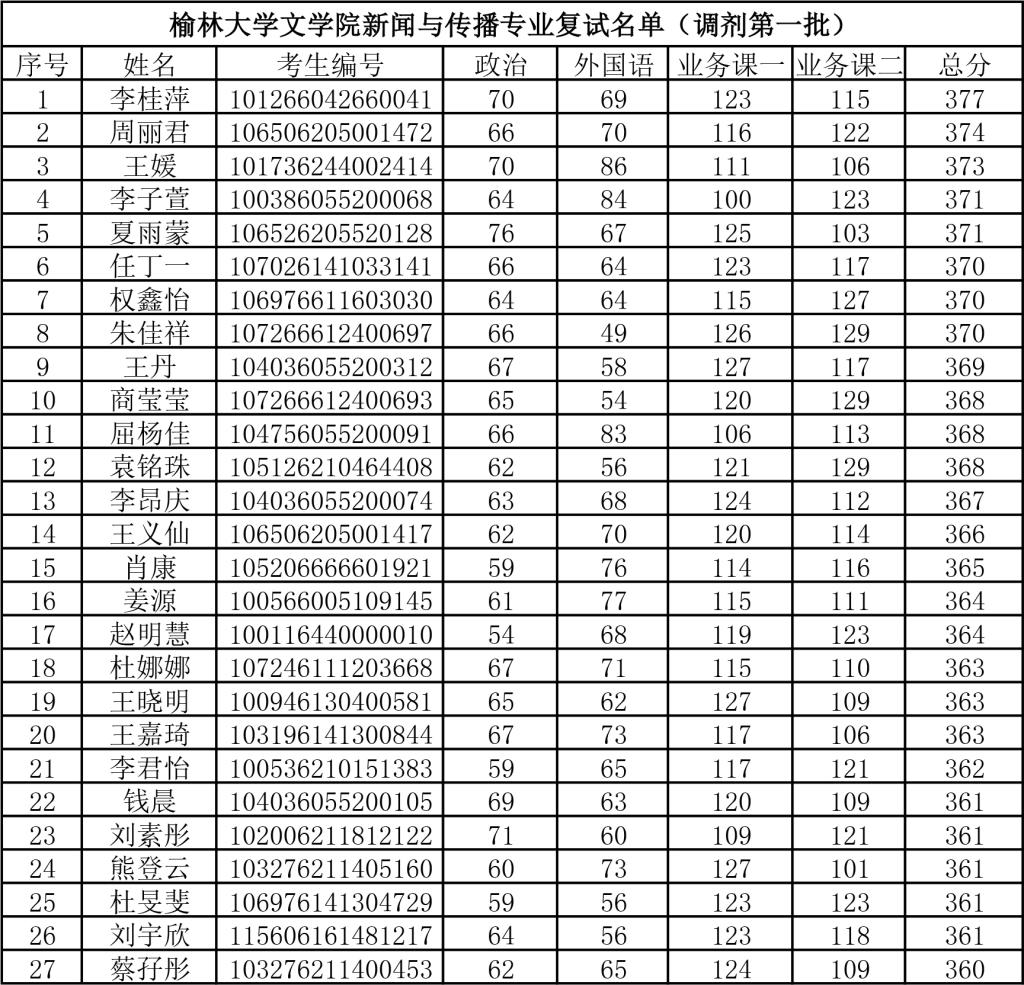 榆林大学文学院2026年硕士研究生招生复试公告(调剂第一批)