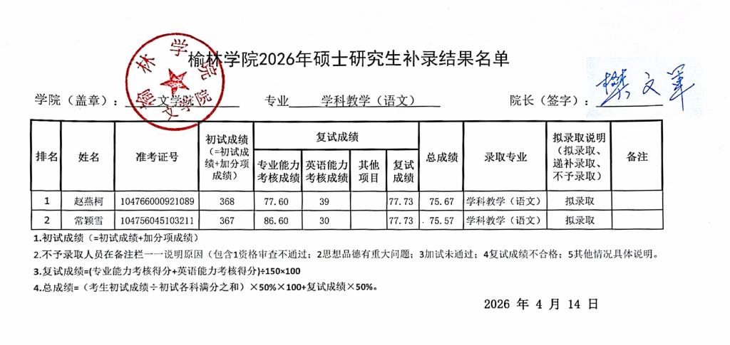 因招生计划调整,现递补录取以下考生,名单公示如下: